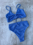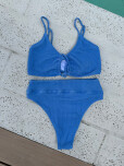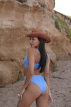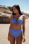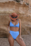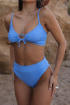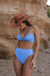 Top para atar + less fija. Forrada Lycra celeste texturada.