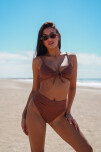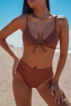 Top para atar + less fija. Forrada Lycra celeste texturada.