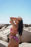 Top con gancho, regulable + less V fija. Forrada Lycra sublimada.
